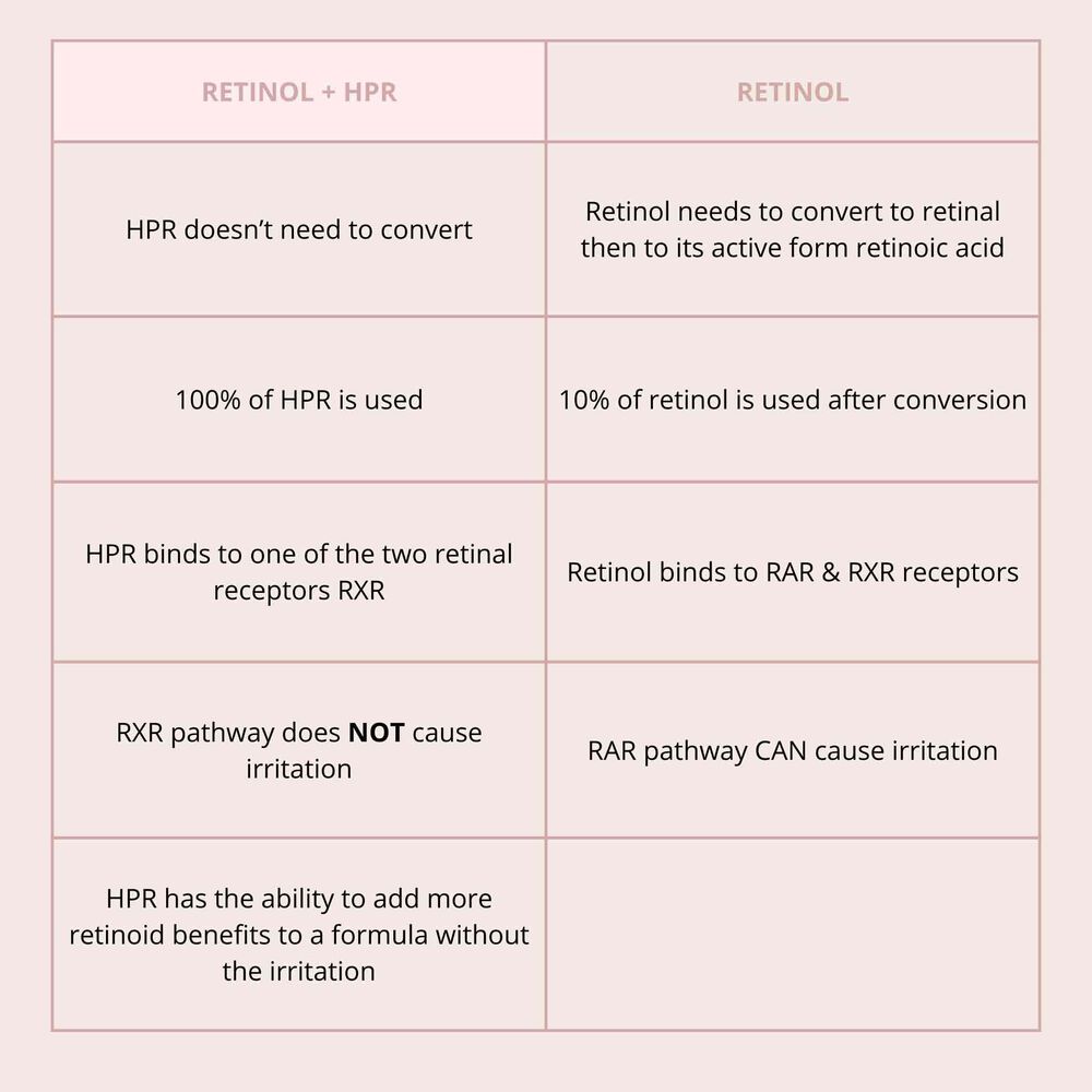 Pure retinol is immediately absorbed for quick results, while HPR (High Performance Retinol). A next-generation retinoid, offers sustained release even after application.